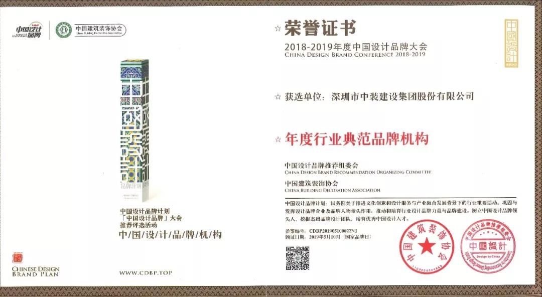 近日,中国设计界一年一度的盛会——2019年中国设计品牌大会暨品牌战略发展论坛,于首都北京荣耀开启。两岸三地设计界精英企业1000余代表齐聚一堂,共襄盛会。中装建设闪耀全场,一举捧回“年度行业典范品牌机构”“年度全国综合影响力品牌机构”“年度最具创新品牌机构”“年度最具商业价值品牌机构”“年度酒店空间标榜品牌机构”等多项荣誉。