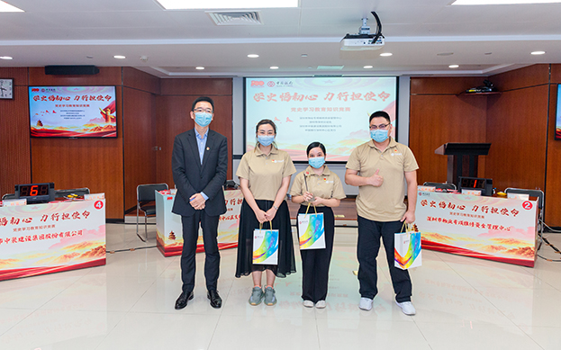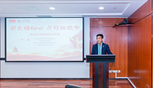 5月28日下午,中装建设联合中国银行深圳中心区支行、深圳市物业专项维修资金管理中心、深圳市深圳公证处共同举办了以“学史悟初心 力行担使命”为主题的党史学习教育知识竞赛。中装建设及三家共建单位党委班子成员、四家单位党员代表参加本次活动。