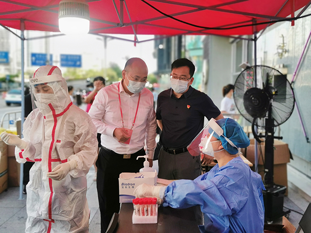 活动现场,中装建设党支部还组织党员志愿者先锋队,坚定投身疫情防控第一线和最前沿,积极开展核酸检测、秩序维护等工作。