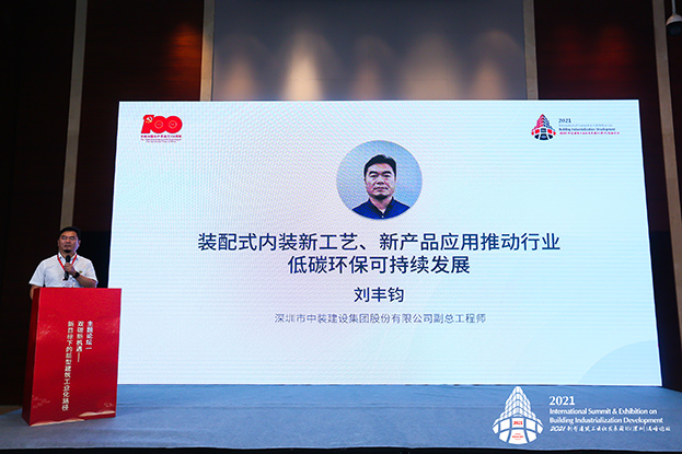 受论坛邀请,中装建设副总工程师刘丰钧以《装配式内装新工艺、新产品应用推动行业低碳环保可持续发展》为主题做大会报告。