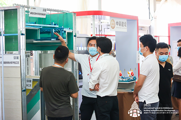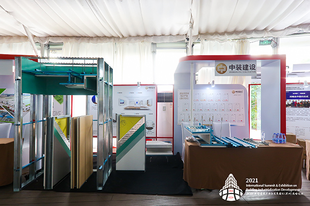 在专家主题演讲之余,精品展会同时进行,公司展位吸引了来自全国各地的众多领导、专家、行业大咖的长久驻足,嘉宾们对中装建设在建筑工业化和装配式建筑方面取得业绩予以高度肯定,对中装建设在装配式领域研发、设计、构件生产、施工、培训、咨询、信息化建设等方面的工作表示赞赏。