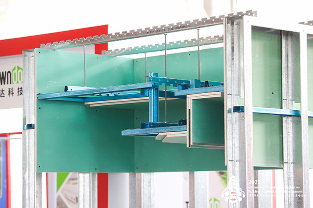 会上,刘总还特别介绍了公司装配式创新工艺和工法:装配式免木天花龙骨系统,装配式墙面瓷砖免砂浆、石材超薄干挂工艺,装配式地面瓷砖石材纯干法施工工艺,装配式纸面石膏板免批灰工艺,装配式装饰一体隔墙系统,强调通过新型建筑工业化,推动行业低碳环保,助跑城市建设高质量发展新格局。