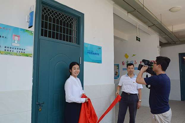 ▲桂园街道领导与中装建设代表为“中装爱心图书室”揭牌